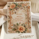 Vintage Orangefarbene Jugendstil-Hochzeit Einladung