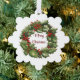 Auf beiden Seiten dieser Papierschmuckkarte befindet sich ein hübsches, Vintages Bild eines Heiligen Beerenkranzes. An der Kartenvorderseite steht "Frohe Weihnachten" und hinten steht "Happy New Year". Eine wunderbare Art, Feiertagsgrüße an Familie und Freunde zu schicken, entworfen, um an ihren Weihnachtsbaum zu hängen!
