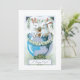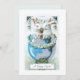 Weiße Vintage Grußkarte lithographische Kunst mit zwei weißen Osterbrunnen in einem gefärbten blauen Ei, umgeben von Lilie des Tals und Klee mit glücklichem Ostergruß.