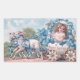 Vintage Osterdarstellung mit Mädchen und Lämmern Rechteckiger Aufkleber