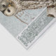 Eine europäische Eule auf einer Birke mit französischem Postzeichen und verziertem blauen Design im aquamarinen gemusterten Hintergrund. Verwenden Sie für Ihre vogel-themed decoupage Projekte.