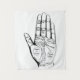 Vintage Palmistry Chart Schwarz-Weiß Illustration. Auch bekannt als Palmlesen, Chiromancy, Chirologie oder Cheirologie, findet man die Praxis auf der ganzen Welt mit zahlreichen kulturellen Variationen. Die Palmisten werden in der Regel Palmisten, Handleser, Handanalysten oder Chirologen genannt.