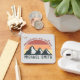 Vintage Pastellberge nennen monogramm personalisierbares Design. Zeichn eines schneebedeckten Gebirges mit pastellfarbenen Linien in Gelb, Orange und Rot, die den Sonnenuntergangshimmel darstellen. Oberhalb des Kreises ruft ein Sprichwort Berge und unter den Bergen gibt es ein Monogramm, wo man seinen Namen hinzufügen kann. Ideal für Natur- und Wanderfreunde.