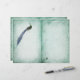 Ein gemusterter, gealterter, grüner Hintergrund mit stolzen Pfauen und blassweißen Details. Ideal, um Ihre Erinnerungen, Gedanken und Wünsche zu erfassen. Dieses Design hat schwache Linien, die sich ideal für die Erstellung eigener Seiten im Frühjahr eignen. Das Papier weist das gleiche Design auf Vorder- und Rückseite auf, sodass man nur die Hälfte falten muss. Dieses vielseitige Papier kann für Scrapbys, Collagen, Foto-Alben oder auch für Papierschnitzereien verwendet werden. Passende Vintage Pfauenpapiere sind in unserem Zazzle-Shop erhältlich, ebenso wie viele andere Designs. Für beste Ergebnisse wählen Sie ein mattes, texturiertes Papier.