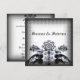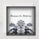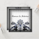 Vintage Romantik mit einem Vintag-gotischen, grauen gemusterten Overlay mit Zwillingsfriedungen und einer blumigen verzierten Blume in Grau, Schwarz und Blau. Ideal für eine gotische Hochzeit oder ein Jubiläum-Party.