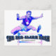 "Bed Alarm Dash" geschrieben in schwarz & blau verblasste Vintage sportliche Schriftart in der Mitte eines Vintagen Nursingfoto von einem Athleten springen über eine Hürde mit einem verblassten weißen Krankenschwestern Kreuz auf der Mitte seiner Uniform mit Worten: "1962 Nursing", geschrieben in kleiner schwarzer Schrift unten.