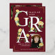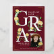 Invite family and friends to your graduation with this customizable floral graduation invitation. It features vintage flowers around the word "GRAD" on a red background. Personalize this botanical graduation invitation by adding a photo, name, school, and other details. All colors are fully customizable.