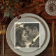 Add your photo and it will turn out with a vintage and rustic flair with our photo overlay. This gives your photo a retro aesthetic with warm tones. Add the couples names and wedding date in white, but let the photo of the couple get the main focus - like old fashion movie stars.