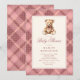 Vintage Pink Plaid Teddy Bear Baby Shower Einladung