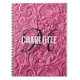 Modern pink 3 ring binder with a black script monogram and white typography on a tooled faux leather background. Personalize with your name, initial on the cover and text on the spine.