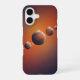 Retro illustration showing a stylized alignment of planets in a warm cosmic palette.