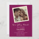 Retro magenta plum and cream colored old-fashioned photo template wedding invitation with a boho vintage vibe. On the back you can add your own scanner code and RSVP info.