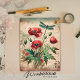 Vintage Poppies & Dragonfly Botanische Ephemera Postkarte