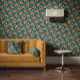 Vintage Poppy in teal orange black Tapete