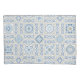 A seamless ornamental tile pattern featuring intricate blue floral motifs, geometric frames, and decorative scrollwork arranged in a classic European-inspired layout on a soft neutral background.