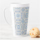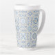 A seamless ornamental tile pattern featuring intricate blue floral motifs, geometric frames, and decorative scrollwork arranged in a classic European-inspired layout on a soft neutral background.