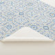 A seamless ornamental tile pattern featuring intricate blue floral motifs, geometric frames, and decorative scrollwork arranged in a classic European-inspired layout on a soft neutral background.