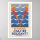 Vintage Poster By Train for Seaside Holidays