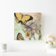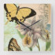 Vintage Postkarte mit Schmetterlingen und Blume Quadratische Wanduhr