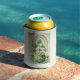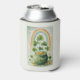 A can cooler with a seasonal St. Patrick's Day image. Faded grunge style paper. A green pot of gold with coins