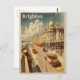 Lassen Sie sich mit unserem Vintage-Reisen und unserem Design, das die zeitlose Faszination der sonnigen Küstenpromenade Brightons einfängt, vom Charme vergangener Zeiten verzaubern. Spazieren Sie entlang der Promenade, die von historischer Architektur umgeben ist, während die Sonne in goldenen Farbtönen am Meer badet. Diese Postkarte lädt Sie ein, die Eleganz einer vergangenen Epoche inmitten der lebendigen Küstenstadt Brightons zu erleben.