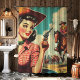 Vintage Pulp Cowgirl Illustration Duschvorhang