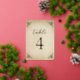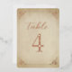 Diese individuellen Hochzeitskarten zeichnen sich durch ein Vintages und elegantes Design aus. Die Tischkarten haben einen Hintergrund aus Pergamentpapier und sind mit einem rustikalen, Vintagen antiken Rahmen gerahmt. Der Rahmen ist in Echtgoldfolie in Rose gedruckt, die der Tischnummer entspricht. Der Text wird in einem eleganten Script-Schriftart gedruckt.