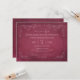 Diese stilvolle Hochzeitsfeier lädt zu einem Vintagen Wein-Label-Design ein. Rustikale, von Hand gezeichnet Skizzen von Blätter der Weinrebe bilden den Rahmen für die Veranstaltung. Auf der Rückseite erscheint ein einfaches geblüht Design mit benutzerdefiniertem Text. Burgunder Rot und Rose Rosa Farben.