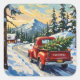 Vintage Red Truck Carrying Christmas Tree Quadratischer Aufkleber