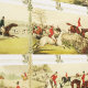 Vintage Buchbeispiele* mit eleganten englischen Adelsfahrern auf galoppierendem Pferd und Jagdhundjagd in der englischen Landschaft. Dieses klassische Design erinnert an traditionelle ländliche Eleganz und wird alle Reitfreunde ansprechen. Perfekt als akzentuierte Wand oder für Kinderzimmer, wird ein großartiges Gesprächsthema. Die gedämpften Grüntöne und die Rottöne auf beigem Hintergrund sorgen für ein harmonisches und raffiniertes Ambiente. Kleine und große Mustergröße verfügbar. *Die Analyse des Jagdfeldes, Illustrator von Henry Alken (1784-1851)