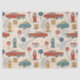 Rustic travel-inspired pattern tissue paper featuring old-style cars, vintage road signs, leaves, and retro adventure elements in a charming countryside style. Ideal for road trip lovers, vintage enthusiasts, travelers, and anyone who loves nostalgic travel aesthetics.