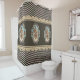 Ein wunderschöner Duschvorhang mit modernen Streifen, romantische Spitze und eine schöne Vintage Frau.