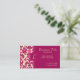 Ein leckeres Damastmuster in den reizenden Schatten der hellen und dunklen Rosa schmücken diese Visitenkarte. Erinnern Sie sich, Sie kann mit Ihrem eigenen Text und Bildern leicht besonders anfertigen! Fronten- und Rückseitenentwurf.