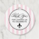 Vintages französisches Thema rund Hochzeit-Brautparty danke Ihnen für die Gefallen Tags Funktion "Danke" in eleganten Kalligrafien-Skript mit einem benutzerdefinierten "für uns zu feiern" Text. Enthält ein schwarz dekoratives Lilie-Symbol und ein helles, cremefarbenes, rosa und weiße Streifen-Hintergrundmuster.