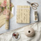 Vintage Abbildung einer Glasvase in einem seidenrosa Band verpackt und mit rosa Tee-Rose gefüllt. Handschrift im Hintergrund und an den Rändern.
