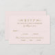 Elegantes, Vintag inspiriertes Hochzeitskartentdesign. Pastellrosa und antike Goldfarben. Personalisieren Sie den benutzerdefinierten Text mit Ihrem Fälligkeitstermin und der Antwortadresse auf der Kartenrückseite. In dieser Version sind die Optionen für das Abendessen aufgelistet, sodass die Gäste ihre Vorliebe für das gedeckte Ganze einlösen können.