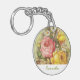 Dieser elegante Schlüsselanhänger, den Sie Ihrem Namen hinzufügen, hat ein Vintages Blumenbild von rosa & gelb Rosen.