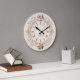 Maßgeschneiderte Wanduhr im schicken französischen antiken Stil mit Vintager Abbildung von Rosensträuchern, alten Rokoko-Blumendekorationen und römischen Ziffern stündliche Markierungen. Sie können diese Retro-Wanduhr mit Ihrem eigenen Namen oder eigenem Text personalisieren!