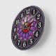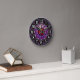 Das coole Uhrendesign erinnert an eine bunte Rose, wie man sie in einer alten Kirche sehen kann. Farbtöne lila und Rose rot mit weißen Buchstaben auf schwarzen Kreisen. Das ist kein wirklich gefärbtes Glas, sieht einfach so aus. Hat eine Art gute Stimmung. Erstellt von Scarebaby Design , alle Rechte vorbehalten.