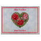 Ein Vintag aussehendes Blumenherz von rote Rosen Set gegen grüne Blätter. Perfekt für den Valentinstag oder einfach nur Ihre Liebe ausdrücken. Es gibt zwei Orte, an denen Sie Ihren eigenen Text anpassen können. Sie können sowohl den Schriftart als auch die Textfarbe ändern. Sie können auch die Farbe des Randes ändern oder ganz entfernen.