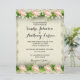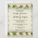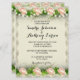 Eine alte Hochzeitseinladung mit einer Ivy, Lichterkette, Spitzen und rosa Rosen. Diese Einladung ist Teil eines kompletten Set.