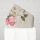 Diese Abbildung zeigt ein Vintages Blumenmuster aus Shabby Chic. An den Kanten sind weiche, rosa Rosen mit zarten grünen Blätter angeordnet, die einen beigen Hintergrund bilden. Das Design ist elegant und romantisch und erinnert an ein klassisches, zeitloses Ambiente.