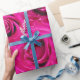 Auf dieser Geschenkpackung steht das Papier zum Feiern in einem schönen, rosa Rosenmuster.