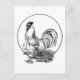 Stilvolle, Vintage Hahn-Ätze aus dem 19. Jahrhundert mit einem schwarz-weißen Vogel stehend auf Gras- und Kies-Tuften mit zwei kleineren Hühnern im Hintergrund stehend. Saubere, um jedes Objekt in einer stilvollen und modernen Art zu dekorieren. Füge deinen eigenen Text hinzu, wenn du die detaillierte Viktorianische Schwarz-Weiß-Kunst magst.