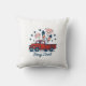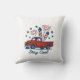 Vintager Red Lieferwagen Throw Pillo Feuerwerk Classic Americana trifft in diesem Vintagen roten Lieferwagen Throw Pillo gefeiert mit Feuerwerk Schießen aus dem Bett und Sterne verstreut herum. Eine flache Illustration Stil und subtile Schatten fügen Charme, mit "Est. 1776" auf der Stoßstange.
