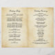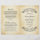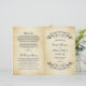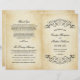 Decorative black swirls and flourishes frame this elegant vintage typography wedding ceremony sheet program design. The rustic ivory background is printed with a textured aged parchment paper appearance. Personalize the custom text for your bridal party, ceremony information and thank you message. Anmerkung: These text weight paper programs kommt flat and require folding to bloc.