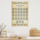 Dekorative Wirbel und Schnörkel umrahmen dieses Vintage, inspirierte Hochzeitsplakat-Design, das ein Monogramm der Braut- und Bräutigamen und des Hochzeitstils, einen individuellen Vorlagentext für Tischnummern und Gastnamen enthält. Das Design umfasst elegante schwarze dekorative Wirbel und Schnörkel. Der rustikale Elfenbeinhintergrund ist mit einem strukturierten, gealterten Pergamentpapier bedruckt.