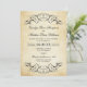 Dekorative schwarze Wirbel und Schnörkel bilden den Rahmen für dieses elegante Vintage typografische Hochzeitsdesign. Der rustikale Elfenbeinhintergrund wird mit einem strukturierten, gealterten Pergament-Papier gedruckt. Personalisieren Sie den stylischen Text für Ihre Hochzeitszeremonie und Ihren Empfang.