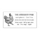 Einfache Briefmarke Ihrer Eierschachteln mit Ihrer eigenen Holzkunst-Briefmarke, ob es nun Ihr Familienbetrieb oder Ihr Unternehmen ist. In einer Vintag rustikalen Typografie, in der Serifen und handgeschriebene Schriftart kombiniert werden, erhalten Sie eine handgezeichnet Hühnerdarstellung mit Ihren Details. Klicken Sie einfach auf "Personalisieren Sie diese Vorlage" und fügen Sie Ihren eigenen Namen und Slogan oder benutzerdefinierten Text hinzu.