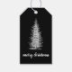 Schwarz-Weiß, rustikal und minimalistisch Weihnachtsgeschenk-Tag mit einer Vintagen Illustration eines Fichtenbaums.